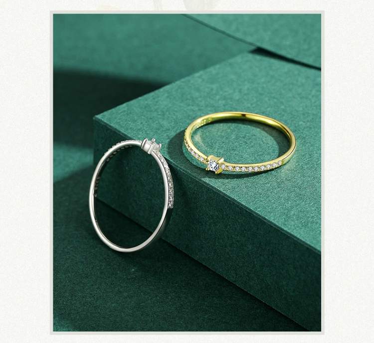Este anel de dedo é a escolha perfeita para a mulher que aprecia design limpo e moderno. O destaque é a zircônia cúbica (CZ) clara e brilhante, lapidada em formato quadrado simples, que oferece um ponto de luz refinado sem ser exagerado.