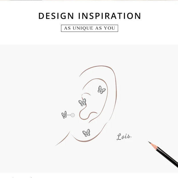 Adicione o brilho delicado das estrelas, borboletas e coração ao seu dia. Seu ear stack espera por você!