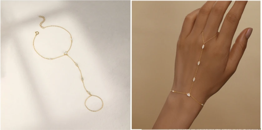 Descubra a joia que está revolucionando o glamour das festas: a Pulseira de Mão Roxi "Desejo Estrelado". Esta peça inovadora combina a elegância de uma pulseira delicada e o brilho de um anel, conectados por uma corrente fina e sofisticada.