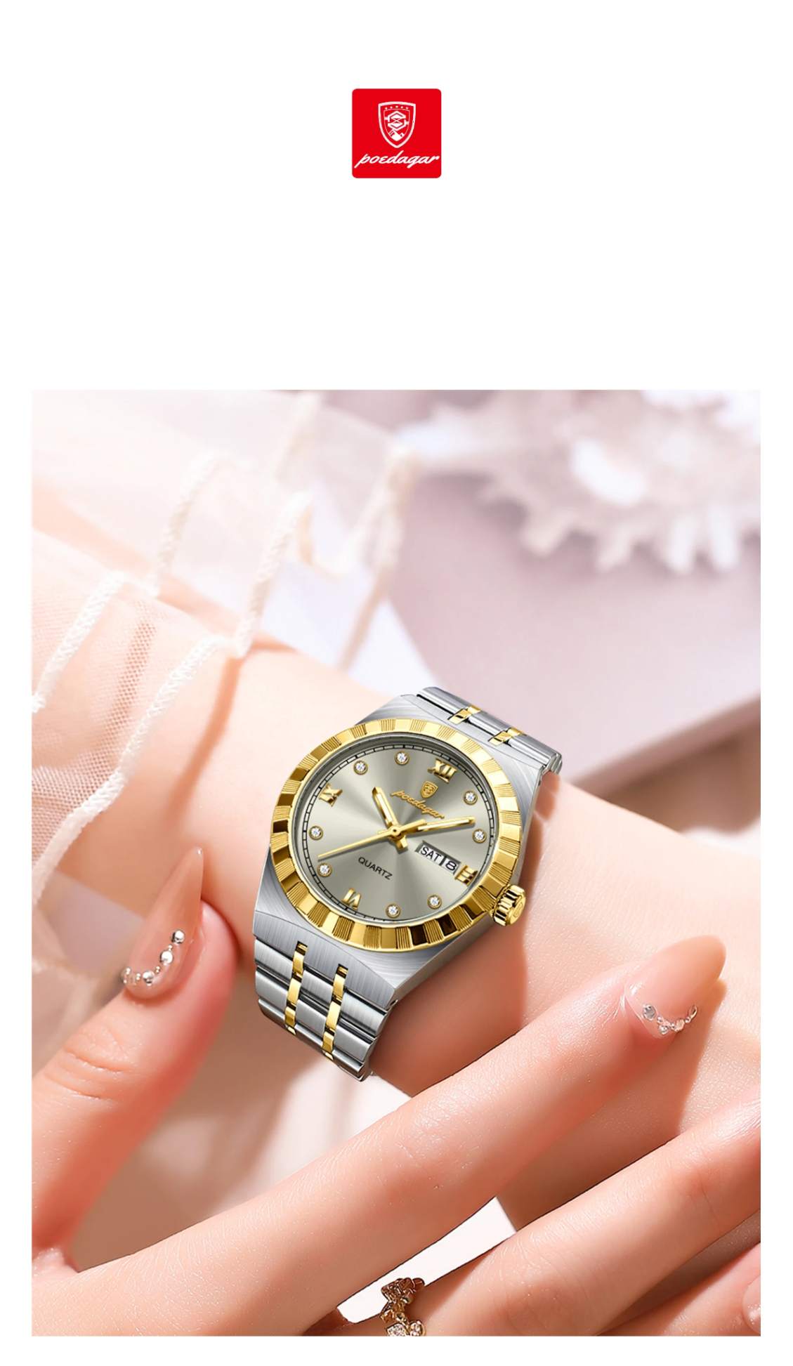 Este Relógio Feminino Luxo Poedagar é um investimento em durabilidade e estilo. O design elegante o torna a escolha perfeita para presentear em ocasiões especiais. Adicione este relógio original e completo à sua coleção e desfrute da combinação de beleza, precisão Quartzo e qualidade inquestionável.