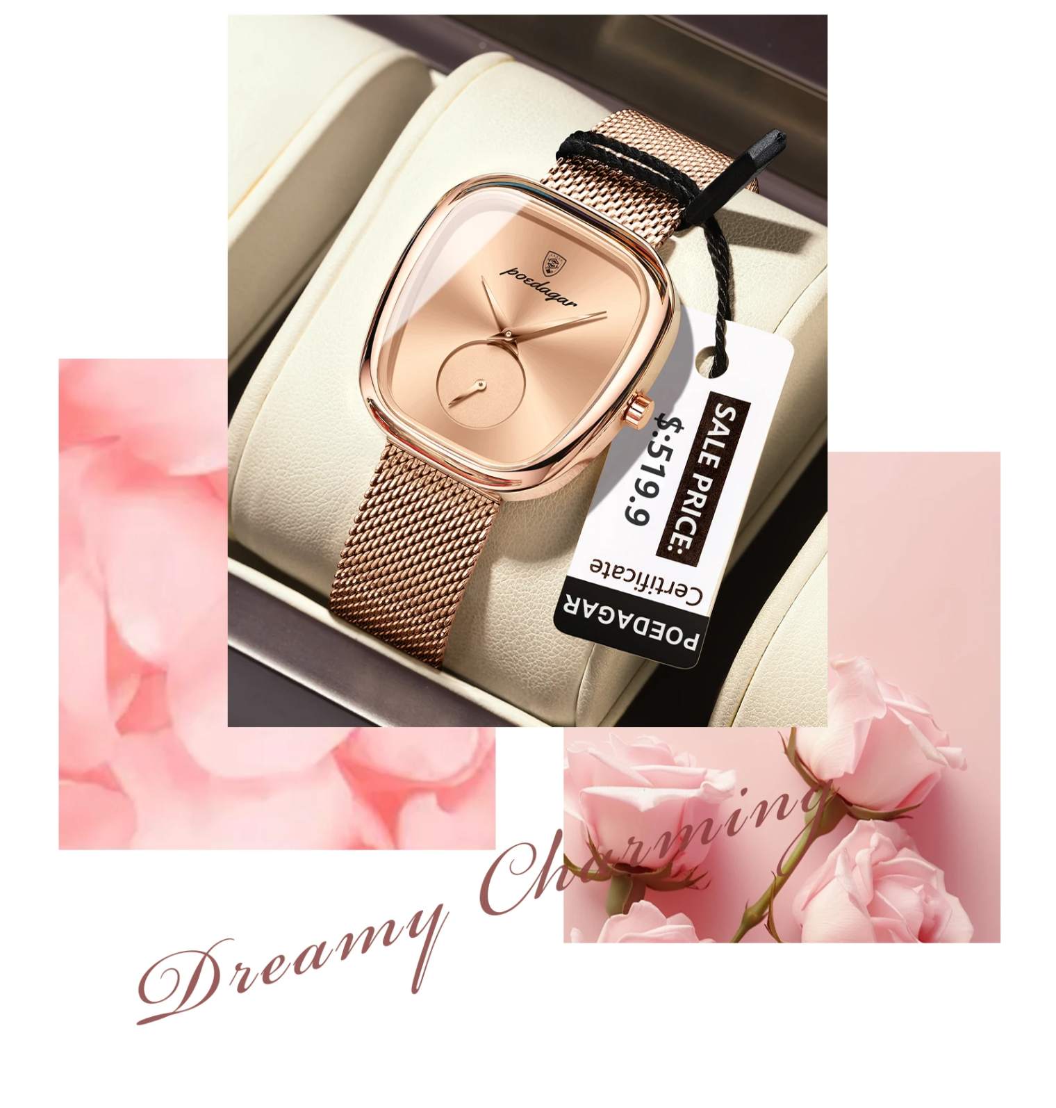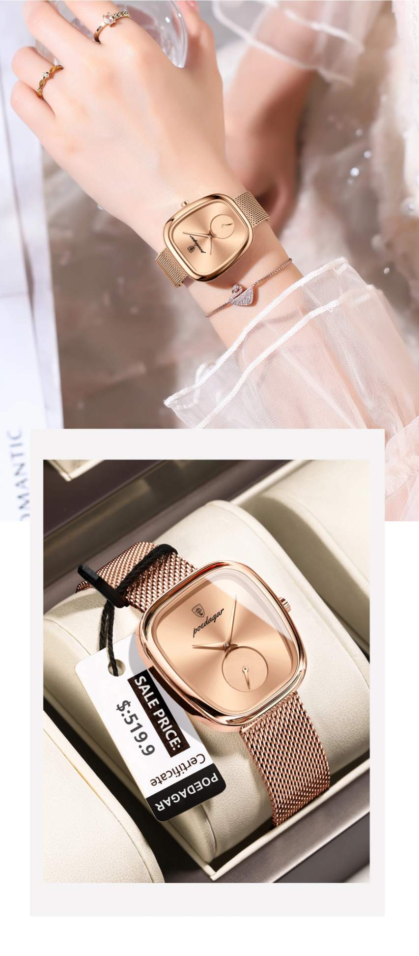 Descubra a sofisticação discreta do Relógio Feminino Poedagar. Este acessório de luxo e moda é a peça-chave para mulheres que valorizam um estilo elegante e contemporâneo. A pulseira em Malha de Aço Inoxidável (Milanese Mesh) é o grande diferencial, sendo incrivelmente fina, leve e confortável, adicionando um toque premium e moderno ao seu pulso.